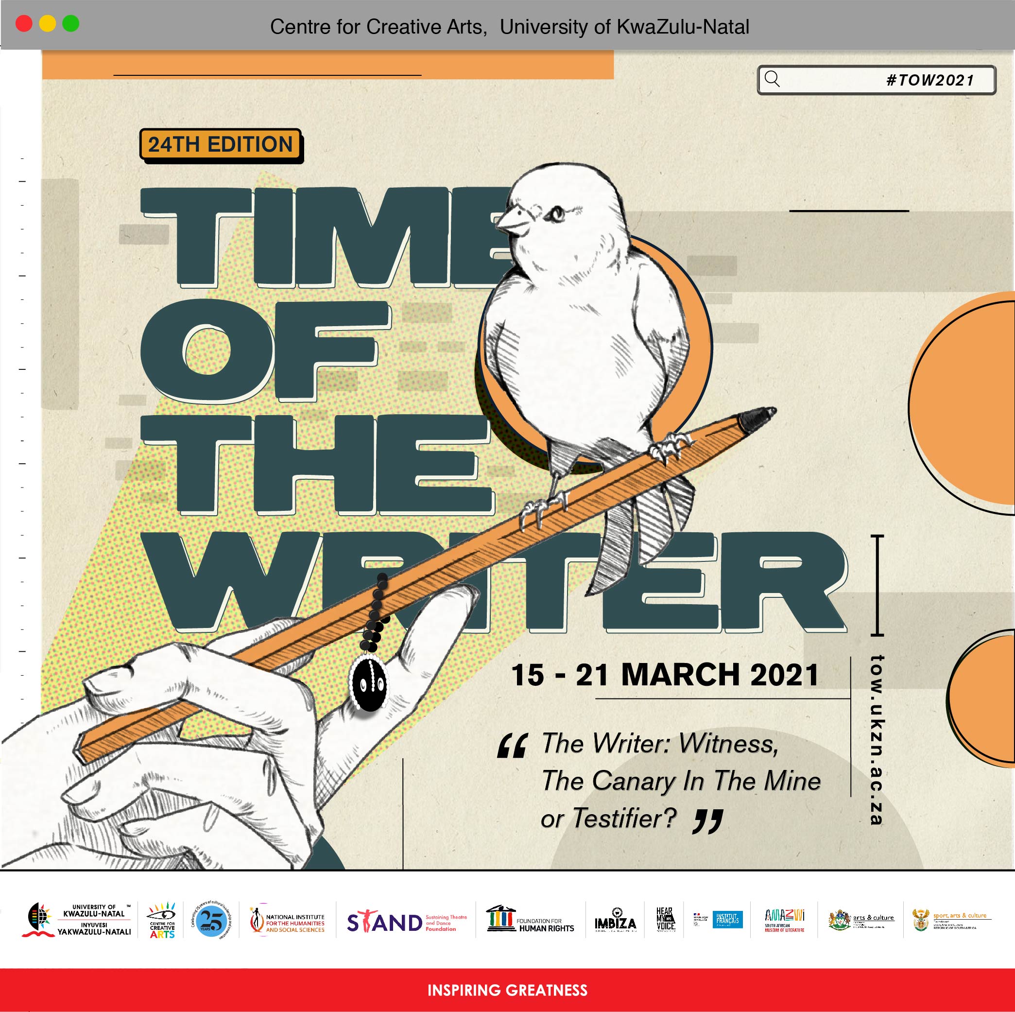 The University of KwaZulu-Natal’s Centre for Creative Arts (CCA) will present the 24th edition of the Time of the Writer International Festival virtually on the festival’s social media channels from 15 to 21 March 2021. That’s this week! HOORAY!
