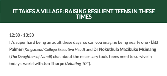 I’m so excited because this year I get to be part of the Kingsmead Book Fair on Saturday 21 May – a first for me! I’m participating in two sessions – one in the young adult programme, and one in the adult programme. Get your tickets to all of the talks, here, or by clicking on the images below.