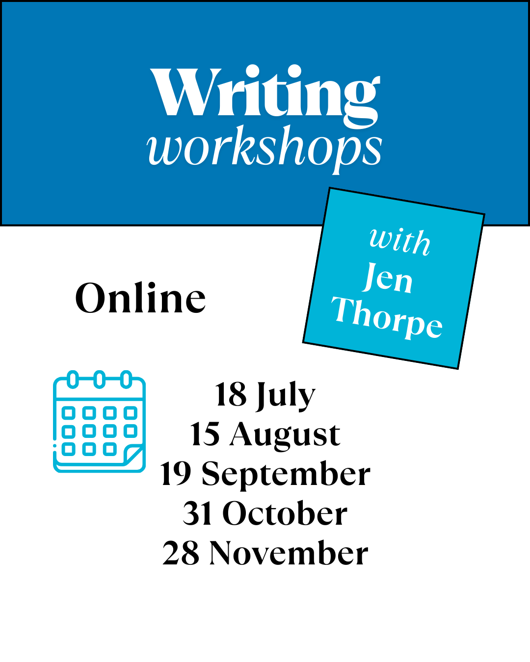 In every workshop we will sit down and complete a series of writing exercises. These will be structured around a theme (see the image at the top of this blog). The theme is there to guide me in sharing activities, prompts, quotes and insights that I will share. The writing you do, however, is totally up to you.