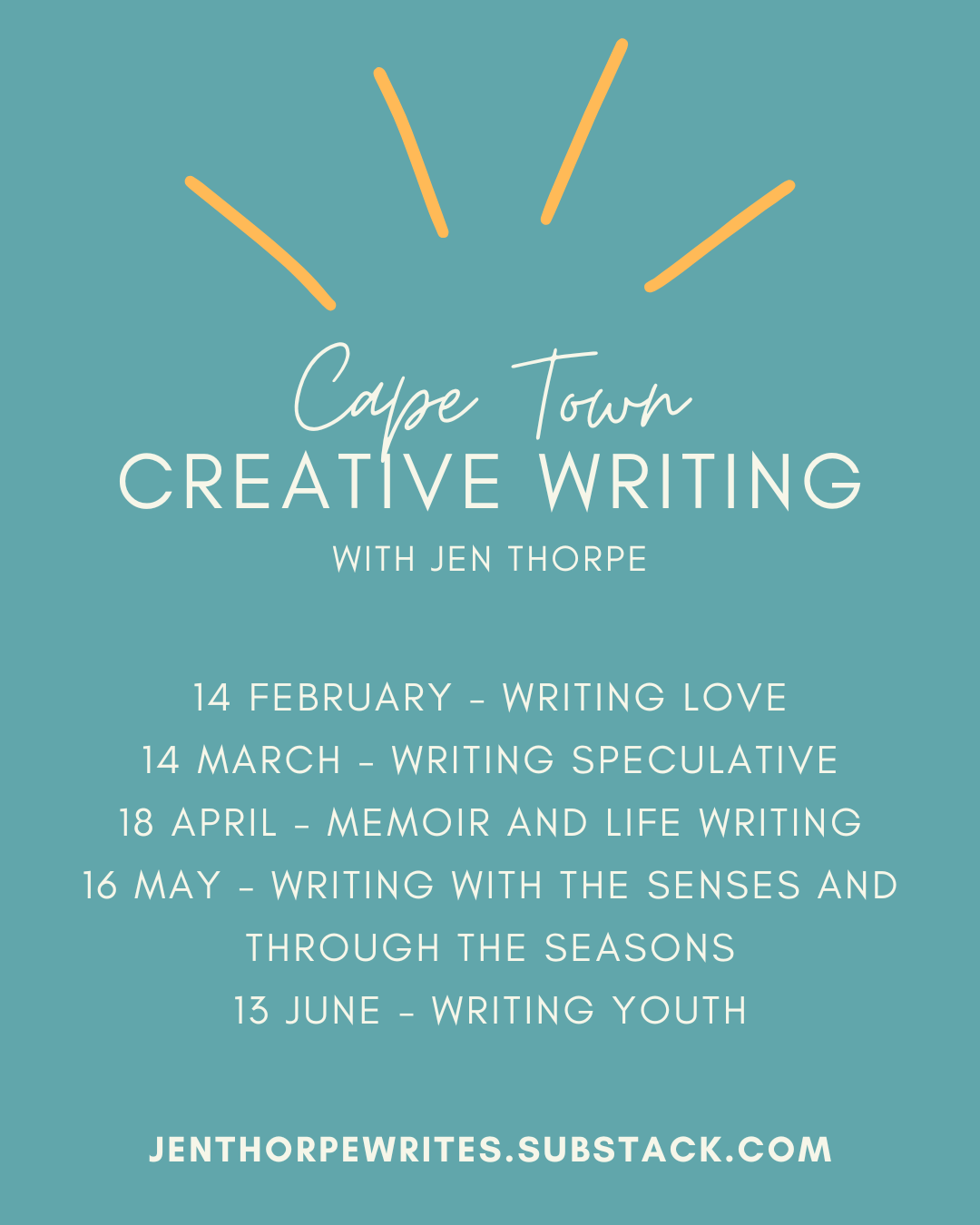 I’m very excited to be hosting my first creative writing workshop tomorrow, 23 January, via Zoom. The workshop takes place from 9am to 1pm (SAST) and will include exercises that help you: